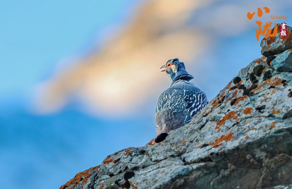 國家二級保護動物藏雪雞,又名“淡腹雪雞”或“貝母雞”。雌雄羽毛相似。嘴為黃色,腳為紅色。前額有一桔色臘膜,眼周裸皮為黃色。背部暗棕色,密布不規(guī)則的細(xì)斑。翼羽暗褐色,具有白色羽緣,初級飛羽為灰褐色,尾羽為深棕色,密布黑褐色點斑。胸、腹均有淡色與黑色相間的黑紋。