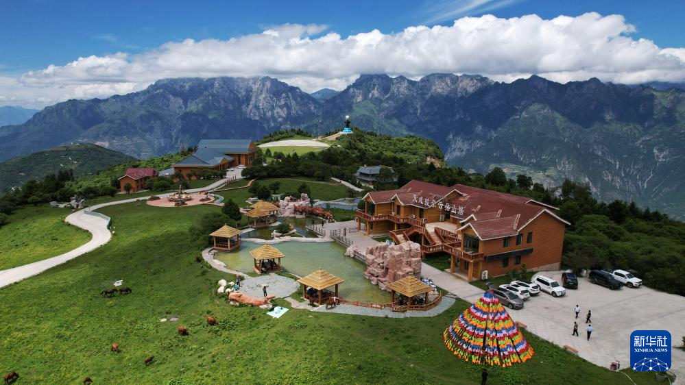 這是7月12日拍攝的舟曲拉尕山一處特色民宿(無人機(jī)照片)。新華社記者 陳斌 攝