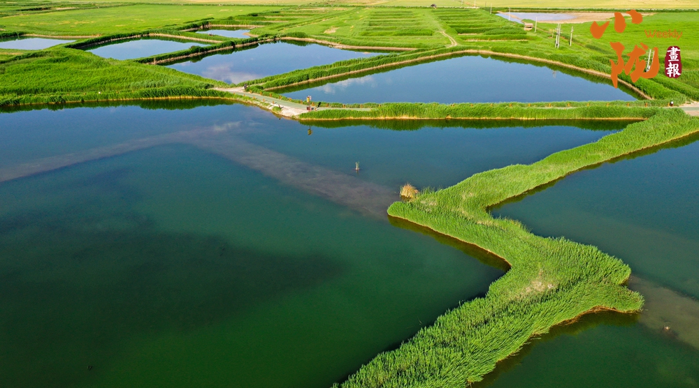 湖邊,蘆葦綠意盎然,隨風(fēng)泛起綠色的波浪,染翠了整個(gè)草湖。每當(dāng)風(fēng)兒掠過(guò),這些層層疊疊的綠意散發(fā)出沁人肺腑的草木清香。在這樣炎熱的日子里,看看這樣清澈的綠,夏天好像變得清涼起來(lái)。