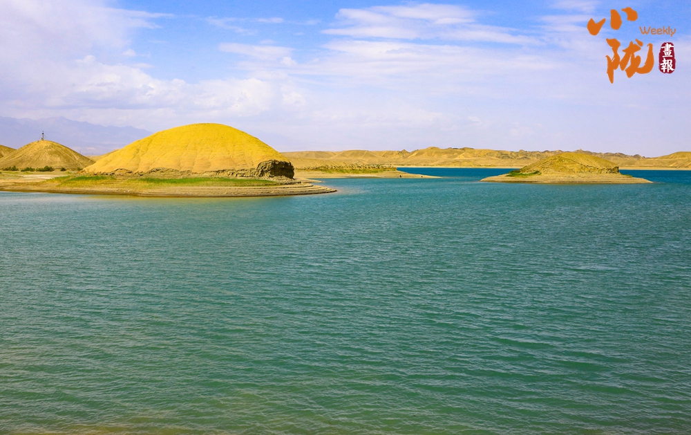 站在湖畔俯瞰,波光粼粼的湖面與頑強(qiáng)生長(zhǎng)的植被、和那湖水中的山丘相映成趣。這山丘并非尋常之物,它們是歲月與風(fēng)霜共同雕琢而成的藝術(shù)品,它們猶如戈壁的眼睛,見證著千年的滄桑變遷,訴說著這片土地不為人知的故事。
