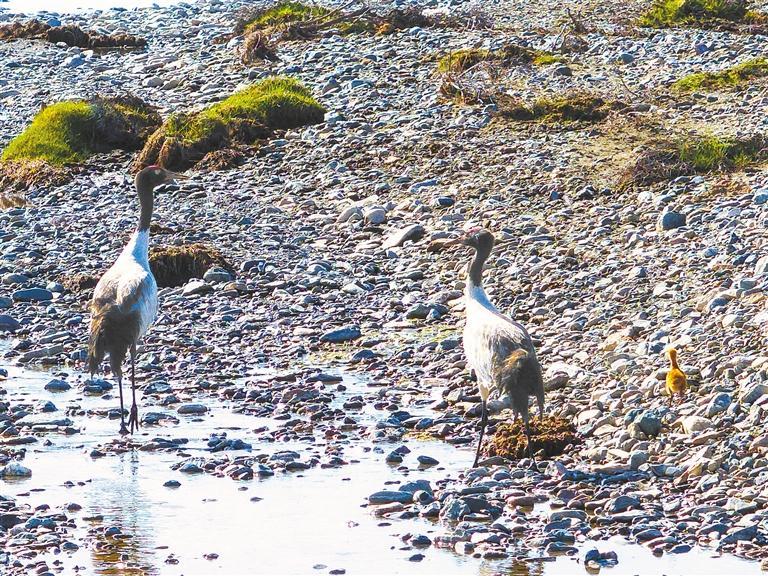 近日,甘肅祁連山國(guó)家級(jí)自然保護(hù)區(qū)管護(hù)中心隆暢河自然保護(hù)站工作人員捕捉到了國(guó)家一級(jí)保護(hù)動(dòng)物黑頸鶴“一家三口”的珍貴影像,為祁連山生物多樣性保護(hù)再添新彩。
