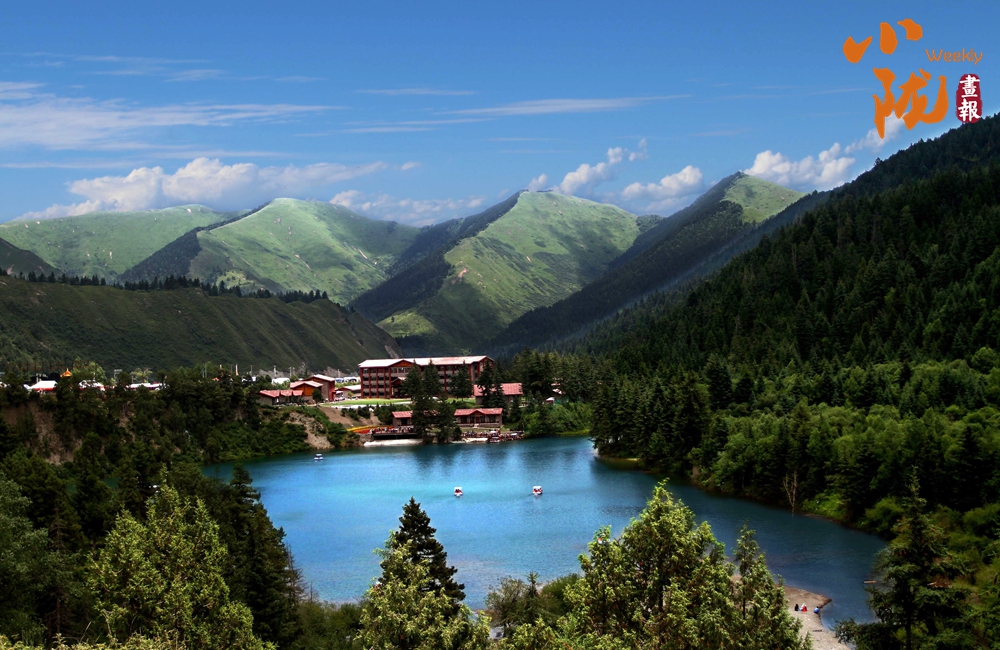 圖杰拉措(漢語意為觀音湖)寧靜地臥在群山的懷抱中,湖面平靜如鏡,似一塊無瑕而絢麗的翡翠,倒映著奇石雄峰、蒼松翠柏??粗娨猱嬀戆愕牧鹆Ш谒{(lán)天白云的映襯下絢麗奪目,心中頓時愜意舒爽。
