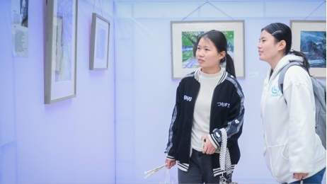 學(xué)校領(lǐng)導(dǎo)陪同畫家們觀展