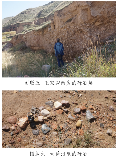 玉石山南麓有一條自東向西流過峽口鎮(zhèn)注入洮河的河——大碧河,《狄道州志》里稱為“打璧河” [12]。玉石山和山下大碧河之間有幾條溝,這些溝是上玉石山的必經(jīng)道路,也是雨水夾帶山上的石頭注入大碧河的通道。在甘肅臨洮馬家窯文化研究院李家功的引領(lǐng)下,我們對(duì)大碧河中下游和通往玉石山的三條支溝進(jìn)行了較系統(tǒng)的調(diào)查,調(diào)查方法是在訪問當(dāng)?shù)赜嘘P(guān)人員的基礎(chǔ)上,進(jìn)行野外實(shí)地考察。大碧河連接玉石山的支溝主要有三條:第一條大溝是王家溝,是玉石山和峽口鎮(zhèn)之間的通道,大雨過后附近的村民往往會(huì)在這條溝里撿到玉石。在王家溝靠近玉石山的茨泉子村,十多戶村民都拿出自己在溝中揀到的十余件山流水玉料(圖版四)供我們觀察、檢測(cè)。玉料大小不一,大者長(zhǎng)軸約30厘米,多呈次圓狀,均有玉皮,內(nèi)部質(zhì)地多細(xì)膩,肉眼鑒定和XRF檢測(cè)結(jié)果表明,玉石主要包括黃綠色(含草花)透閃石玉、透輝透閃石玉及透閃石大理巖,另外還有螢石料。王家溝下游匯入大碧河入口段,發(fā)育三級(jí)階地,前人使用大型機(jī)械開挖二、三級(jí)階地礫石層(圖版五),據(jù)說在其中找到較多玉料,現(xiàn)政府已叫停。在階地礫石層中我們也撿到淺黃綠色透輝透閃石大理巖及半玉化的大理巖礫石,這些礫石是玉石山玉礦的近礦圍巖。王家溝匯入大碧河,因此大碧河中也可以撿到從王家溝滾落的玉石山上的玉石和其它巖石。我們?cè)诖蟊毯訊{口鎮(zhèn)段揀到較多直徑約3~5厘米來自玉石山的透閃石大理巖,巖石磨圓度高,成球狀或橢球狀,質(zhì)地較細(xì)膩。據(jù)當(dāng)?shù)厝酥v,也有人在大碧河峽口鎮(zhèn)段撿到過小塊的玉石;第二條溝是小溝——漆家溝,位于王家溝西面,雖位于玉石山正面,但鮮有聽到在溝里撿到玉石的消息;第三條溝是王家溝東面的石景峽,距離玉石山相對(duì)較遠(yuǎn),其溝腦是玉石山的東延部分?!兜业乐葜尽防镙d“打璧河,在州北三十里,源出石井峽,即打璧谷” [13]。這里的“石井峽”可能就是現(xiàn)在所說的“石景峽”,峽中腰有水冒出。但現(xiàn)在的大碧河不源于石景峽,而是源于洮河和渭河的分水嶺。石景峽雖可能是史籍上的打璧谷,且在峽里也撿到了透閃石大理巖礫石,但沒有發(fā)現(xiàn)玉石器和玉料。