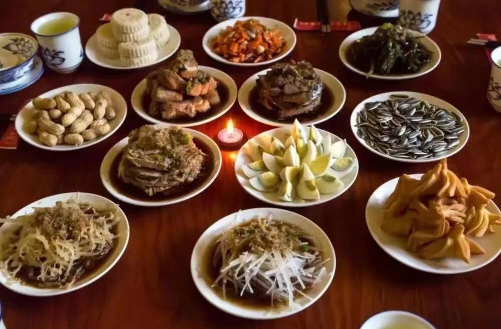 ——“十三花”,寓意胡太后以民為本的執(zhí)政理念;城內(nèi)四個(gè)葷菜,寓意人民四季安康、幸福美滿;骨頭碟和懸肉碟,寓意父骨母血、尊老孝親;肝子碟和雞蛋碟,寓意肝膽相照、心心相印;四個(gè)水菜碟子水圍城,寓意順風(fēng)順?biāo)?、四方平安;城外瓜籽花生碟,寓意多子多福、多祿多壽;路食和果子,寓意衣豐食足、一路平安;最中間一個(gè)大碟全盤為中心,寓意團(tuán)結(jié)聚力、天下一心。