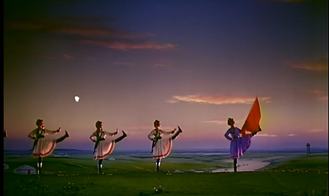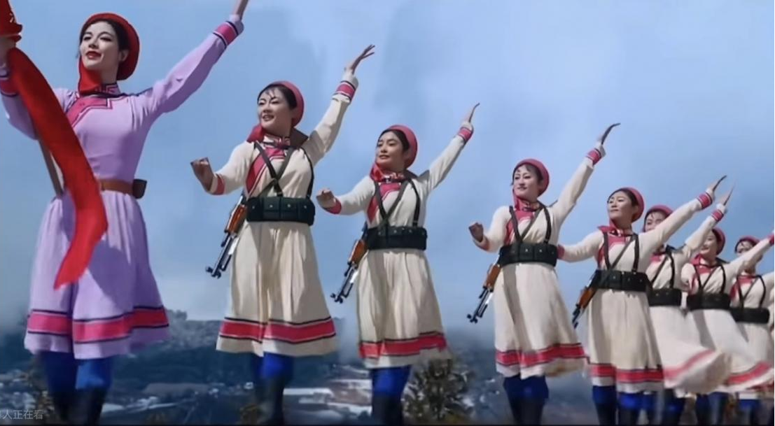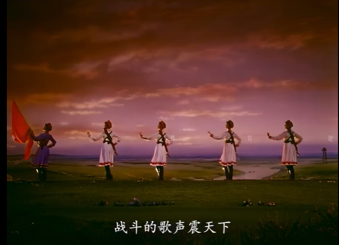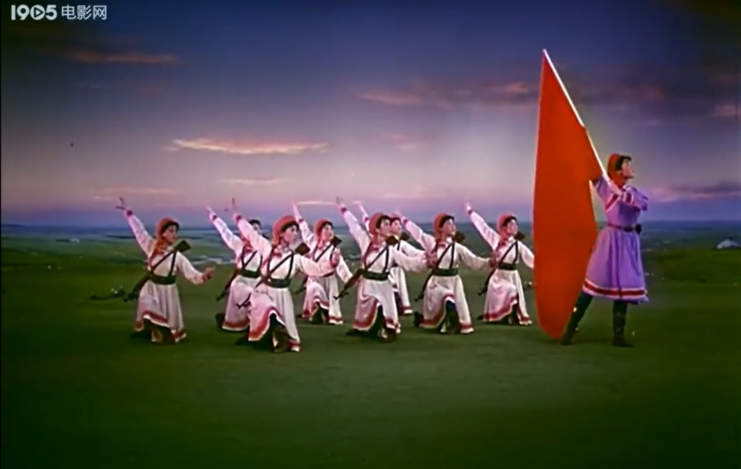 今天,當(dāng)我們談?wù)摗恫菰癖窌r(shí),很大程度上是在談?wù)摗栋倩幤G》中的《草原女民兵》。電影不僅保存了這部舞蹈,更在某種意義上重新定義了它。那些通過鏡頭精心構(gòu)建的畫面,那些經(jīng)過剪輯強(qiáng)化了的節(jié)奏,那些通過混音豐富了的聲音,共同塑造了后世對(duì)這部作品的集體認(rèn)知與審美想象。