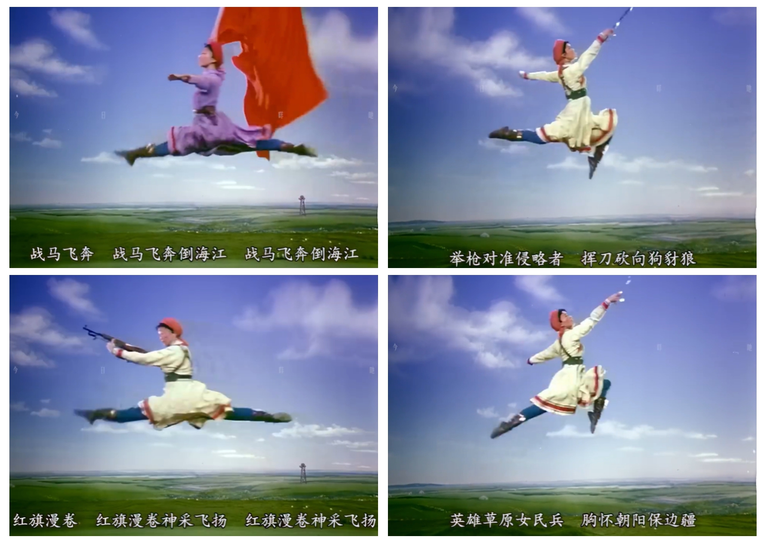 半個(gè)世紀(jì)后的今天,當(dāng)我們重新凝視那些略顯褪色的電影畫面,依然能感受到那股撲面而來的藝術(shù)沖擊力——女民兵們揚(yáng)鞭催馬的颯爽英姿,搏擊風(fēng)雨的堅(jiān)韌力量,以及蒙古族舞蹈特有的舒展與豪邁。這些本應(yīng)隨著幕布落下而消失的舞臺(tái)瞬間,因電影而獲得了不朽。本文試圖探尋,《百花爭艷》作為特定歷史時(shí)期的藝術(shù)載體,究竟通過怎樣的方式,使《草原女民兵》這樣一部根植于時(shí)代土壤的舞蹈作品,突破了時(shí)空的桎梏,成為跨越代際的審美記憶。