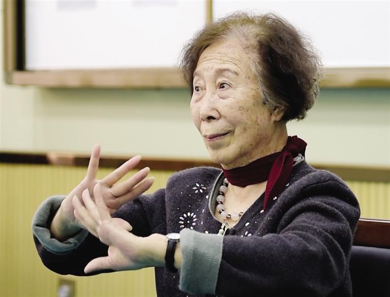 今年87歲高齡的高金榮,依然神采奕奕。“年紀(jì)大了,精力有限,我只想把生命的余熱,盡力留在舞蹈課堂上,培養(yǎng)更多的優(yōu)秀教師,也讓更多的孩子學(xué)習(xí)敦煌舞,領(lǐng)悟敦煌文化那種包容萬(wàn)物卻不失自我的精神。”每周兩到三天,她都要來(lái)到蘭州文理學(xué)院,向青年舞蹈教師傳授敦煌舞的“秘訣”,親自給中專(zhuān)班和本科班的學(xué)生進(jìn)行舞蹈教學(xué)。因?yàn)橥忍鄣脑?,她不能長(zhǎng)時(shí)間站立和進(jìn)行腿腳的示范。盡管如此,只要高金榮老師出現(xiàn)在課堂上,教室門(mén)口就被學(xué)生們圍得水泄不通,甚至還有一些老師慕名而來(lái)學(xué)習(xí)。師生們的一次吸氣,一個(gè)提胯,一個(gè)扭動(dòng)……這些動(dòng)作或律動(dòng)稍有不妥,她都會(huì)敏銳地發(fā)現(xiàn),并一絲不茍地糾正和指導(dǎo),直至完美。她嚴(yán)謹(jǐn)治學(xué)的態(tài)度和孜孜不倦的教學(xué)品行,讓師生們受益匪淺。