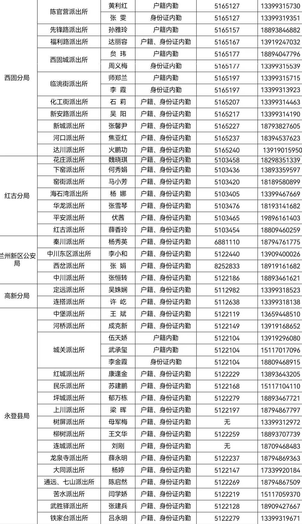 為切實(shí)滿足大量務(wù)工、經(jīng)商、就學(xué)人員陸續(xù)返鄉(xiāng)回家辦理戶籍、身份證業(yè)務(wù)的實(shí)際需要,今年春節(jié)期間(1月21日至27日),蘭州市公安局111個(gè)派出所戶籍窗口將為辦事群眾提供“網(wǎng)上辦理+預(yù)約服務(wù)”,有辦事需求的群眾請登錄“甘肅公安政務(wù)服務(wù)平臺”或撥打公布的電話提前預(yù)約辦理。