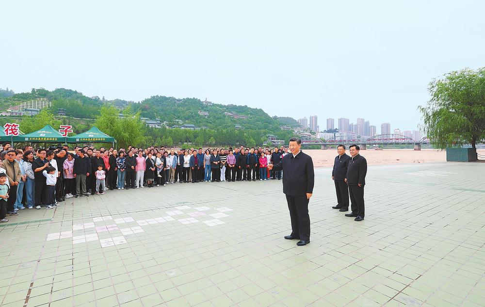 9月10日至13日,中共中央總書記、國家主席、中央軍委主席習近平在甘肅考察。這是11日下午,習近平在黃河蘭州中山橋段考察時,同在場的干部群眾親切交流。新華社記者王曄