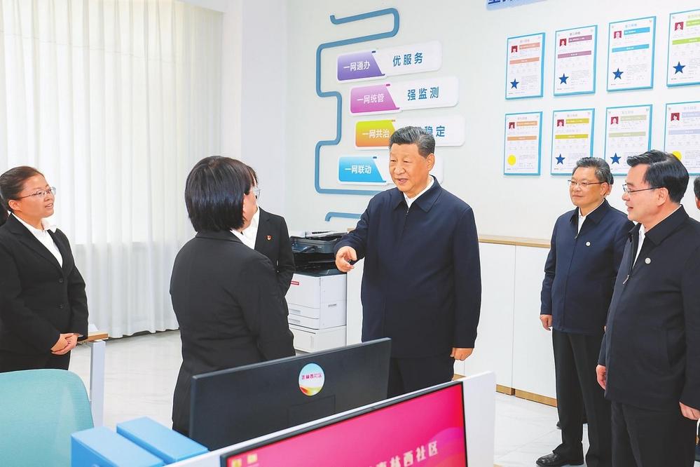9月10日至13日,中共中央總書記、國家主席、中央軍委主席習(xí)近平在甘肅考察。這是11日下午,習(xí)近平在蘭州市公安局安寧分局劉家堡派出所考察。新華社記者燕雁