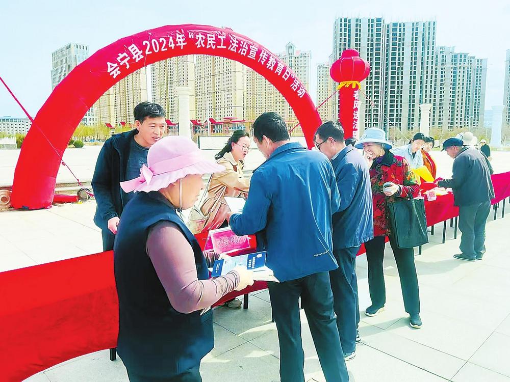 會寧縣司法局開展“農(nóng)民工法治宣傳教育日”活動。新甘肅·甘肅法治報通訊員張彩君攝