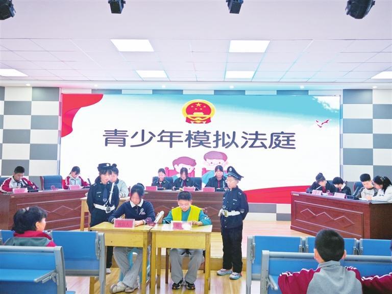 首先,在李青源律師的悉心指導和同學們的踴躍參與下,經(jīng)過前期的認真彩排,同學們以模擬法庭的形式現(xiàn)場模擬了一起因校園欺凌導致的刑事訴訟案件。參與庭審活動的學生們沉浸式、體驗式、互動式參與其中,有序扮演著審判長、公訴人、辯護人等角色。活動也讓在場的其他同學認識學習了法庭審判的全過程,身臨其境感受了校園欺凌會產(chǎn)生的嚴重后果,以及法律的威嚴,引導青少年學會用法律保護自己。