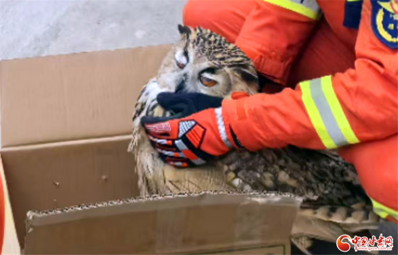 經(jīng)工作人員辨認(rèn),該鳥(niǎo)類(lèi)為雕鸮,屬?lài)?guó)家二級(jí)保護(hù)動(dòng)物,經(jīng)檢查該雕鸮無(wú)外傷,符合放生條件,遂將其帶到安全區(qū)域后放回了大自然。