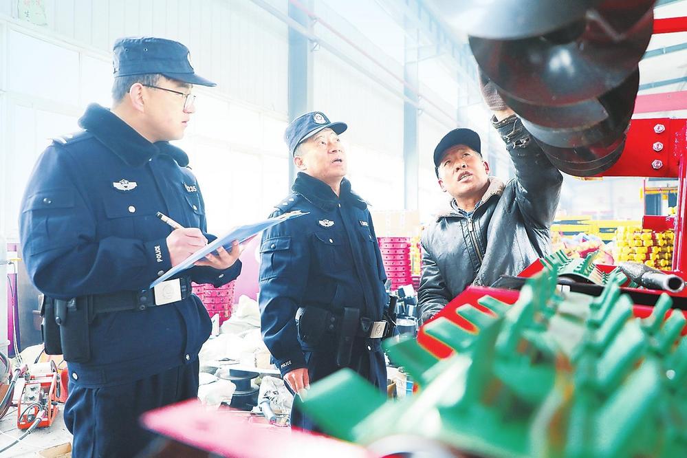 民警檢查農(nóng)機(jī)安全情況。2月20日,定西市公安局安定分局民輔警深入農(nóng)機(jī)制造、銷售網(wǎng)點(diǎn),開展農(nóng)機(jī)安全隱患排查治理工作,助力春耕生產(chǎn)。新甘肅·甘肅法治報(bào)通訊員楊永剛攝