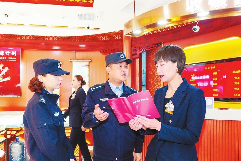 3月14日,蘭州市公安局七里河分局組織多個(gè)派出所民輔警走進(jìn)商超、餐飲、副食品店等營業(yè)場所,開展“3·15”消費(fèi)者權(quán)益日普法宣傳和專項(xiàng)檢查,倡導(dǎo)商家誠實(shí)守信合法經(jīng)營,為消費(fèi)者營造安全、放心的消費(fèi)環(huán)境。 新甘肅·甘肅法治報(bào)記者張瑞軍攝