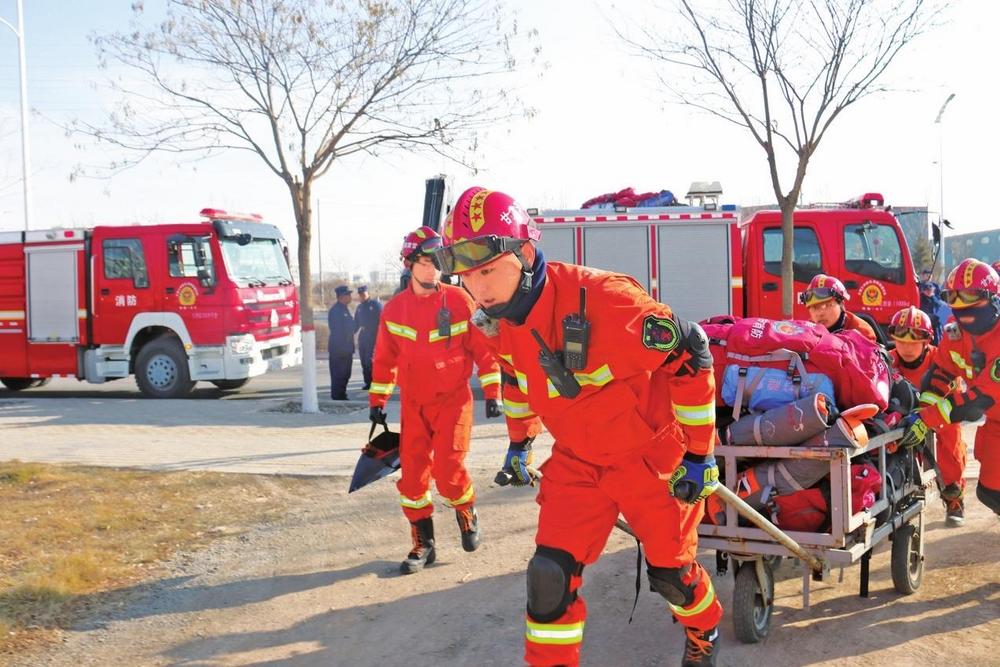 地震救援拉動訓(xùn)練中的劉學(xué)法?!√m州新區(qū)消防救援支隊(duì)供圖