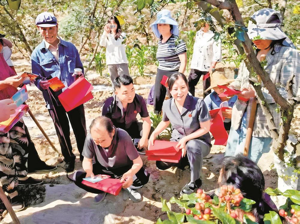 安化法庭干警走進(jìn)花椒種植園,與村民圍坐交流,現(xiàn)場(chǎng)答疑解惑。 武都區(qū)法院供圖