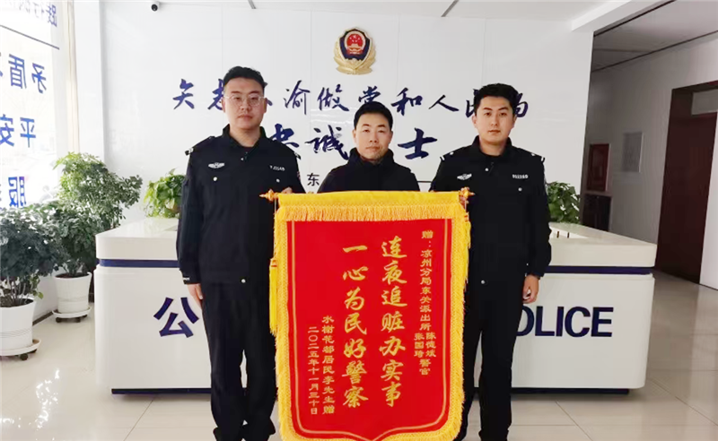 拿到失而復(fù)得的手機(jī),李先生激動(dòng)不已:“真沒(méi)想到你們能連夜幫我找回來(lái),你們太負(fù)責(zé)任了!”隨后,他也送來(lái)一面寫有“連夜追贓辦實(shí)事,一心為民好警察”的錦旗,向民輔警的盡心盡責(zé)表達(dá)感謝。