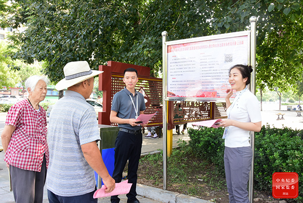 河北省邯鄲市永年區(qū)紀委監(jiān)委在村委會、醫(yī)院、公園等公眾場所懸掛公示牌,向群眾發(fā)放告知書,對群眾身邊腐敗和作風問題整治內(nèi)容進行現(xiàn)場講解,提高群眾知曉率。(河北省邯鄲市永年區(qū)紀委監(jiān)委 朱照坤 攝)