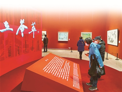 20世紀(jì)50年代以后,反映熱火朝天生活的藝術(shù)樣式漸漸成為主流,畫家們開始在傳統(tǒng)筆墨中融入新的風(fēng)格。江蘇省美術(shù)館展廳展出了江蘇藝術(shù)群體“新金陵畫派”的作品。新金陵畫派是20世紀(jì)中國畫壇的重要畫派之一,畫家們倡導(dǎo)“思想變了,筆墨就不能不變”的藝術(shù)理念,在繼承傳統(tǒng)的基礎(chǔ)上以新筆墨反映時代的巨大變化。