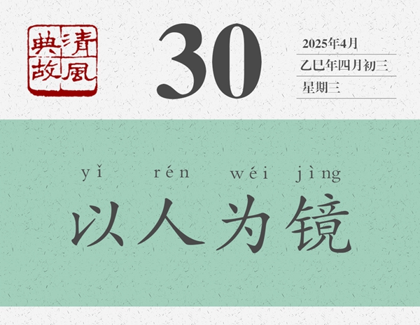 墨子主張“非攻”,所以認(rèn)為好戰(zhàn)必?cái) D右霉耪Z“以人為鏡”的意思是,智伯以強(qiáng)凌弱,以大欺小,最終引火燒身,身敗名裂,應(yīng)該成為“以攻戰(zhàn)為利”者的前車之鑒。后人則以“以人為鏡”為典,比喻可以從別人的成敗得失中吸取經(jīng)驗(yàn)教訓(xùn)?!杜f唐書·魏征傳》:“以銅為鏡,可以正衣冠;以古為鏡,可以知興替;以人為鏡,可以明得失。”