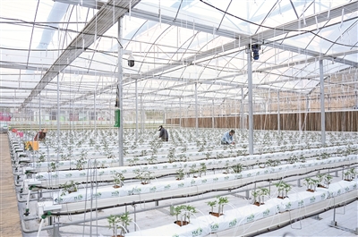 四川省黑水縣以建設(shè)小麥蔬菜現(xiàn)代農(nóng)業(yè)園區(qū)新品種選育及中試熟化試驗基地為抓手,配備農(nóng)業(yè)科技設(shè)施設(shè)備,賦能高原農(nóng)產(chǎn)品品種的選育優(yōu)化。圖為近日,技術(shù)人員和工人為正在進行培育的番茄苗裝上番茄夾。新華社記者 王曦 攝
