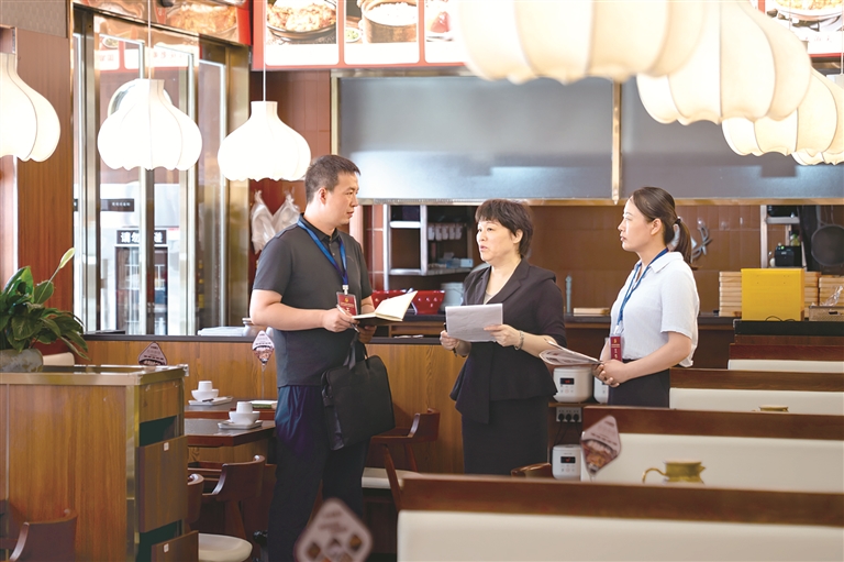 河南省漯河市郾城區(qū)紀委監(jiān)委圍繞公款吃喝、違規(guī)接受管理服務(wù)對象宴請等違反中央八項規(guī)定精神問題開展監(jiān)督檢查,一嚴到底狠剎歪風邪氣。圖為近日,該區(qū)紀檢監(jiān)察干部在轄區(qū)某飯店了解相關(guān)情況。王曉 攝