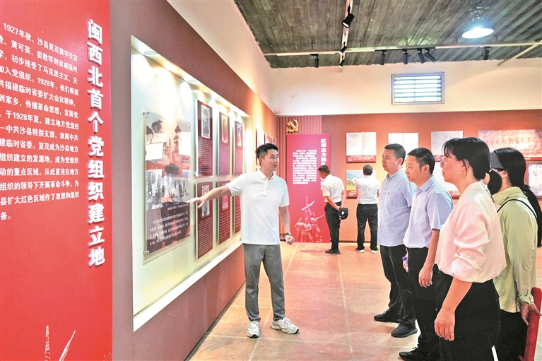 近年來,福建省泰寧縣紀(jì)委監(jiān)委運(yùn)用紅色資源,通過參觀學(xué)習(xí)紅色場館、開展紅色故事宣講等方式,引導(dǎo)紀(jì)檢監(jiān)察干部賡續(xù)紅色血脈,傳承光榮傳統(tǒng)和優(yōu)良作風(fēng)。圖為近日,該縣紀(jì)檢監(jiān)察干部到三明市沙縣區(qū)夏茂鎮(zhèn)紅色展廳開展學(xué)習(xí)。許林煒 攝