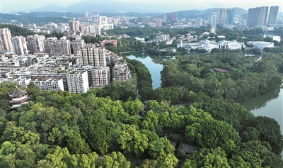 福建省福州市濕地資源豐富,全市濕地面積19.42萬公頃,濕地率15.14%,約占福建省濕地面積的三分之一,位居全國濱海城市前列。圖為近日拍攝的福州西湖——左海濕地公園沿岸城市風光。 新華社記者 魏培全 攝