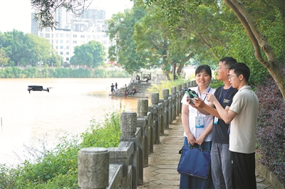 廣西壯族自治區(qū)北流市紀委監(jiān)委把生態(tài)環(huán)保責任落實情況作為政治監(jiān)督重點,嚴肅查處濕地保護方面不擔當、不作為、亂作為、假作為等問題,用鐵的紀律守護綠水青山。圖為近日,該市紀檢監(jiān)察干部與生態(tài)環(huán)境部門工作人員在圭江河濕地開展聯(lián)合監(jiān)督檢查,了解相關(guān)黨員干部履職情況。李家輝 攝