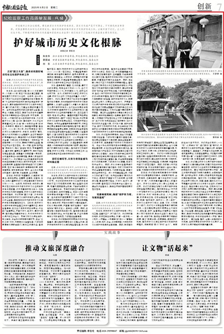 景國誠:我們把體制機(jī)制建設(shè)作為破解保護(hù)與發(fā)展難題的關(guān)鍵點,將制度嚴(yán)起來、合力聚起來、紀(jì)律挺起來,著力守住歷史文化的“根”與“魂”,為城市高質(zhì)量發(fā)展注入底蘊(yùn)與活力。歷史文化保護(hù)必須從源頭立規(guī)矩、定邊界。我們及時提出加強(qiáng)文化遺產(chǎn)保護(hù)傳承領(lǐng)域監(jiān)督問責(zé)的建議,推動制定出臺《關(guān)于進(jìn)一步加強(qiáng)歷史文化名城保護(hù)的意見》等系列政策文件,形成“市委牽頭抓總、人大立法保障、政府具體實施、紀(jì)委全程監(jiān)督”的工作格局,明確“誰來保護(hù)、保護(hù)什么、怎么保護(hù)”。歷史文化保護(hù)涉及規(guī)劃、住建、文旅、文物等多個部門,我們充分發(fā)揮監(jiān)督貫通協(xié)調(diào)機(jī)制作用,從壓實屬地責(zé)任和協(xié)同責(zé)任上雙向發(fā)力,把檢查、保護(hù)、監(jiān)管等全過程責(zé)任分解到縣鄉(xiāng)兩級黨委政府、具體行業(yè)部門,解決了各管一段、銜接不暢、推諉扯皮等職責(zé)不明晰的問題,建立“聯(lián)席會商+問題清單+跟蹤問效”機(jī)制,推動歷史文化街區(qū)保護(hù)和文物保護(hù)問題整改,用制度把“散力”擰成“合力”。制度的生命力在于執(zhí)行。我們綜合運用深入一線“挖”、巡察審計“移”、部門聯(lián)動“查”等方式,開展歷史文化保護(hù)專項檢查,對重點線索、疑難案件掛牌督辦、直查直辦,嚴(yán)肅查處突出問題,既追究直接責(zé)任,也倒查監(jiān)管責(zé)任,對已整改問題開展“回頭看”,以監(jiān)督執(zhí)紀(jì)提升工作質(zhì)效,實現(xiàn)“保護(hù)有力度、發(fā)展有溫度”的良性循環(huán)。