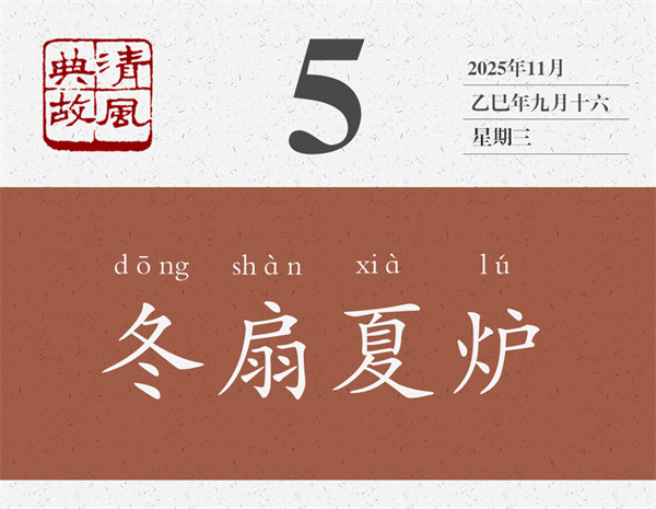 以冬進爐,以夏奏扇,明明是違背常識的事,為什么還有人喜歡做呢?所以,后世即以“冬扇夏爐”為典,形容一個人的言論或行動不合時宜,不切實際。清人張祥齡《詞論》:“左春右秋,冰蟲之見,生今反古,是冬箑(shà)夏爐,烏乎能。”箑,扇子。揚雄《方言》:“自關而東謂之箑,自關而西謂之扇。”