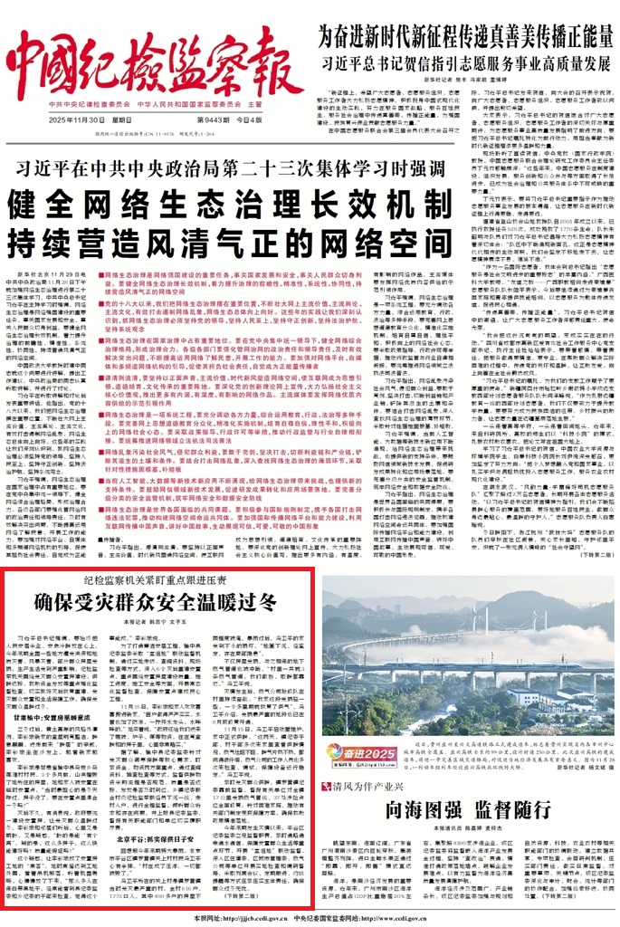 《中國紀檢監(jiān)察報》2025年11月30日(第1版)