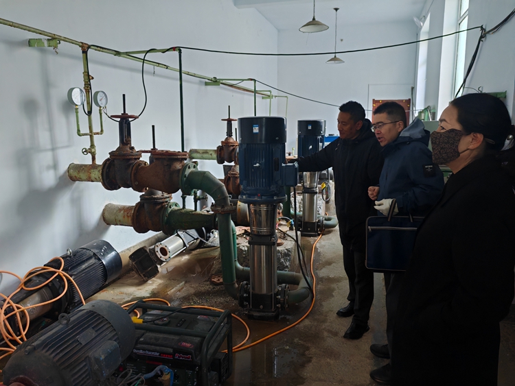 巡察組工作人員和縣供排水公司負責人到東河灘泵廠實地查看制水工藝、管網維護、安全生產情況。