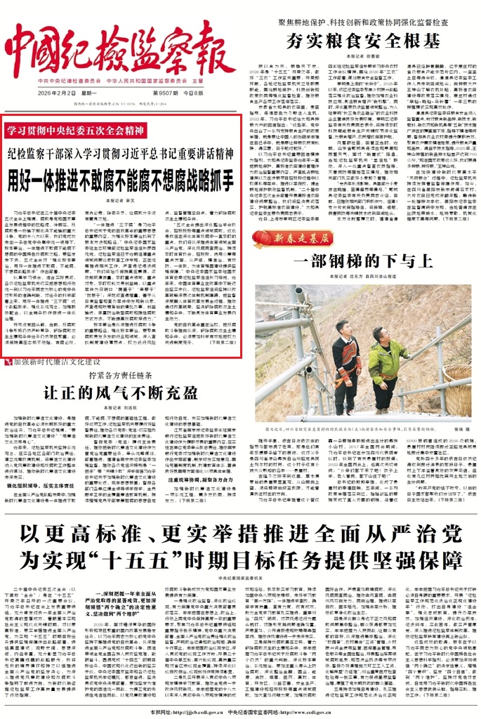 《中國紀(jì)檢監(jiān)察報(bào)》2月2日第1版
