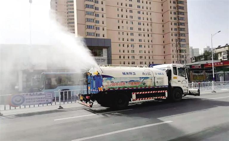 原標(biāo)題:加派作業(yè)車(chē)輛 增加保潔頻次 保持路面濕潤(rùn)