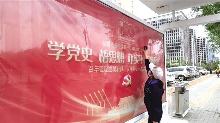 新區(qū)公交公司充分利用公交車這一載體,結(jié)合黨史學(xué)習(xí)教育和慶祝建黨100周年公益宣傳標(biāo)語,精心設(shè)計(jì)了宣傳畫,張貼在新區(qū)公交11路、12路、13路、14路、15路、16路等公交車車身醒目位置;在公交車車廂內(nèi)的燈箱、宣傳欄圖文并茂宣傳黨史故事,生動形象地展示黨的光輝歷程;并在公交車車尾屏和出租車頂燈滾動播放宣傳標(biāo)語。同時,該公司在重要路段沿線公交站亭張貼了黨史學(xué)習(xí)宣傳海報(bào),打造出以紅色為主題的宣傳走廊,通過一個個黨史流動宣傳站,讓黨史學(xué)習(xí)教育深入街巷,將黨史知識潛移默化傳遞給市民,引導(dǎo)廣大市民知史愛黨、知史愛國。