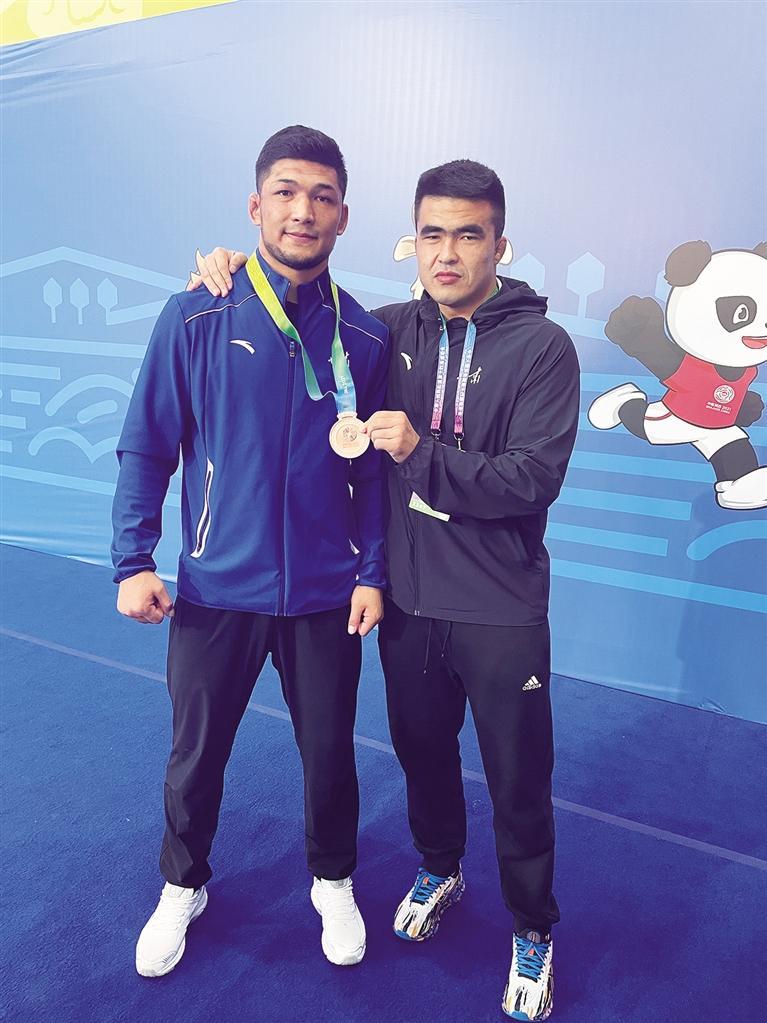 木黑特·吐爾遜別克(左)與教練合影