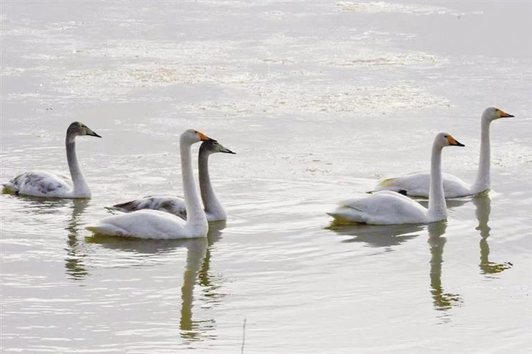 中國(guó)甘肅網(wǎng)1月7日訊 據(jù)蘭州日?qǐng)?bào)報(bào)道(記者 董永前 攝)最近幾天,西固區(qū)達(dá)川鎮(zhèn)三江口水域,成群天鵝在這里“落戶安家”,成為當(dāng)?shù)匾患恍〉男侣劊簧偈忻窈陀慰颓皝碛^賞。