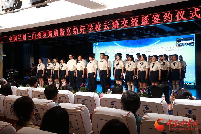 在蘭州外國語高級中學舉行的此次“中國蘭州—白俄羅斯明斯克結(jié)好學校云端交流暨簽約儀式”上,蘭州外國語高級中學與明斯克市第23中學、蘭州市第33中學與明斯克市第33中學校長及主要負責人經(jīng)過交流后,分別簽署締結(jié)“百校結(jié)好”項目學校協(xié)議,正式建立友好合作關系。今后將在師生互訪、教師培訓、課程交流、國際學生社團建設等方面開展合作交流。之后,四所學校學生還分別表演了富有各國傳統(tǒng)文化和民族特色的文藝節(jié)目。