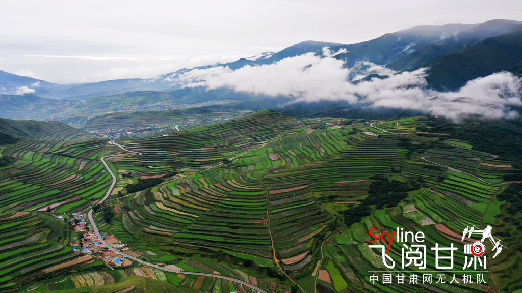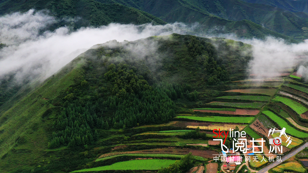 白露將至,位于榆中縣馬坡鄉(xiāng)的分水嶺,青山環(huán)繞,梯田阡陌交錯,線條優(yōu)美,風(fēng)光旖旎。一陣陣雨過后,梯田云霧繚繞,遠(yuǎn)處的崇山峻嶺、茂林修竹、通村公路和村莊人家若隱若現(xiàn),為美麗田園增添了些許“仙氣”。