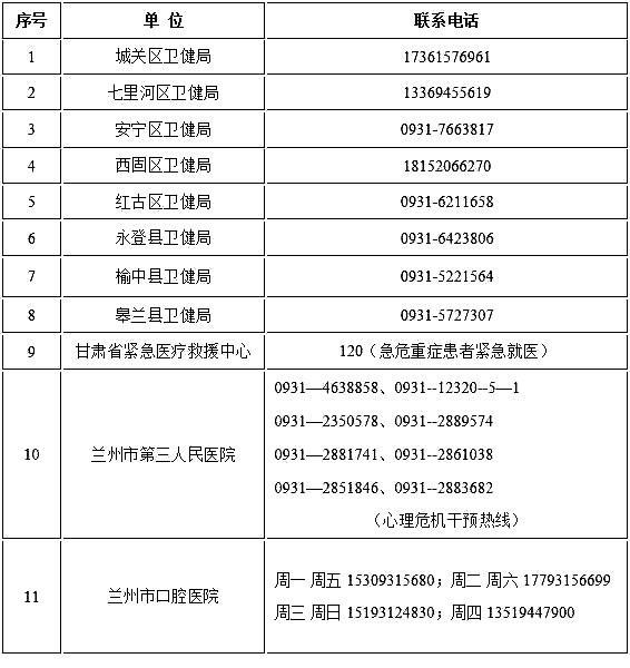 本報(bào)訊(奔流新聞·蘭州晨報(bào)記者王思璇)為進(jìn)一步做好蘭州市疫情防控期間“非綠碼”患者的醫(yī)療救治工作,滿(mǎn)足群眾日常醫(yī)療服務(wù)需求,蘭州市動(dòng)態(tài)更新并公布了市域疫情防控期間“非綠碼”定點(diǎn)醫(yī)院24小時(shí)咨詢(xún)熱線、醫(yī)療服務(wù)咨詢(xún)聯(lián)系電話。