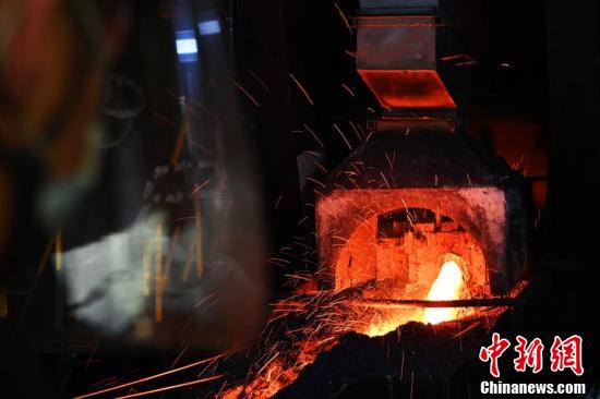近期,位于甘肅省金昌市金川集團的鎳冶煉廠閃速爐車間內(nèi),操作員正在進行高鎳锍緩冷工作。