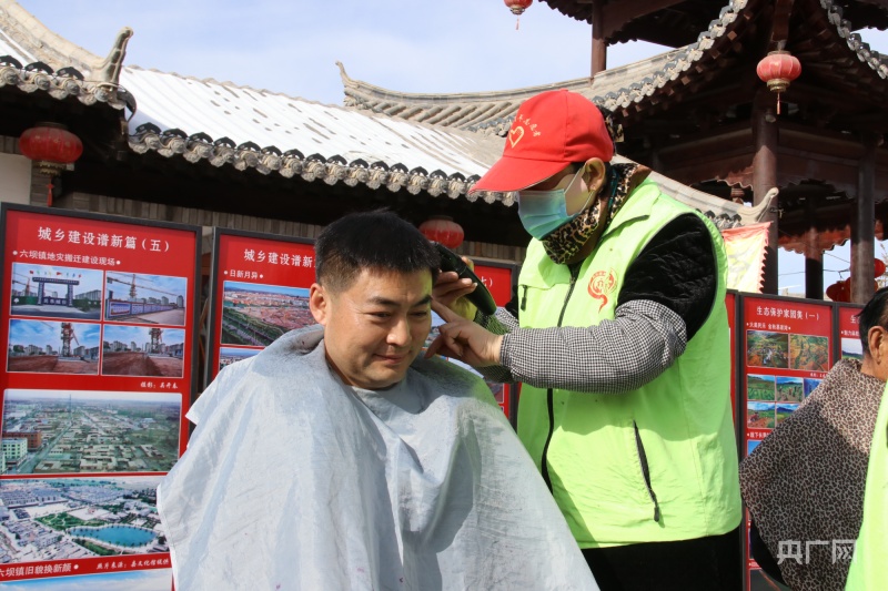 志愿者為群眾剃頭(央廣網(wǎng)發(fā) 趙玉梅 攝)