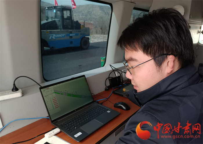 中國甘肅網(wǎng)4月6日訊(本網(wǎng)記者 宋芳科 實習生 王文博)“駕駛員可以休息一下,下面由無人駕駛集群智能化攤鋪路面。”4月6日上午,甘肅路橋安臨路面二標項目瀝青路面鋪設現(xiàn)場,無人駕駛的鋪路機組成集群駛?cè)胧┕がF(xiàn)場,在無駕駛員操作的情況下智能前行,實現(xiàn)公路鋪設碾壓一體化成型,而指揮這些龐大工程車輛的僅僅是一名技術人員和一臺筆記本電腦,真正實現(xiàn)了路面鋪設智控化。