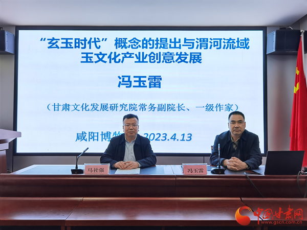 中國甘肅網(wǎng)4月13日訊 為進一步促進博物館學術研究交流創(chuàng)新,激發(fā)博物館發(fā)展活力,持續(xù)推動博物館高質(zhì)量發(fā)展,陜西咸陽博物院于4月13日下午3點舉辦第二期“咸博大講堂”專題講座,甘肅文化發(fā)展研究院常務副院長、一級作家馮玉雷作了題為《“玄玉時代”概念的提出與渭河流域玉文化產(chǎn)業(yè)創(chuàng)意發(fā)展》的學術報告。咸陽博物院院長馬社強主持講座。