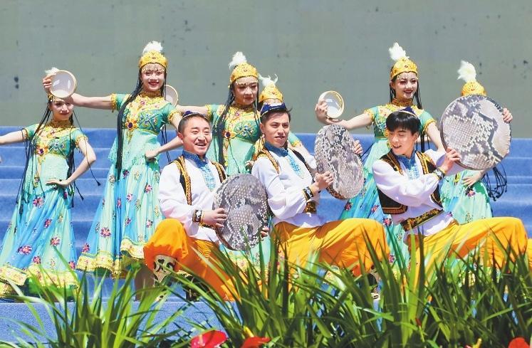 隨著曼妙激昂的舞蹈《石榴花開》上演,這場屬于“花兒”的盛會正式啟幕。隨后,《雪白的鴿子》《巴西古溜溜》、優(yōu)雅大氣的舞蹈《吉祥歡歌》《絲路民族風(fēng)》《今夜草原有雨》《白牡丹令》等經(jīng)典歌舞節(jié)目精彩上演,贏得臺下陣陣掌聲。甘肅籍民謠歌手張尕慫帶來的《等風(fēng)來》更是將現(xiàn)場氣氛推向高潮,來自各個民族的數(shù)千觀眾沉浸在這場非遺文化盛宴中。