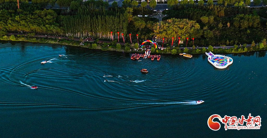 6月13日,張掖市甘州區(qū)“樂(lè)游甘州·水上嘉年華”觀光娛樂(lè)項(xiàng)目正式啟航,眾多游客體驗(yàn)觀光畫(huà)舫、動(dòng)力沖浪板、快艇滑翔傘等水上運(yùn)動(dòng)觀光項(xiàng)目。