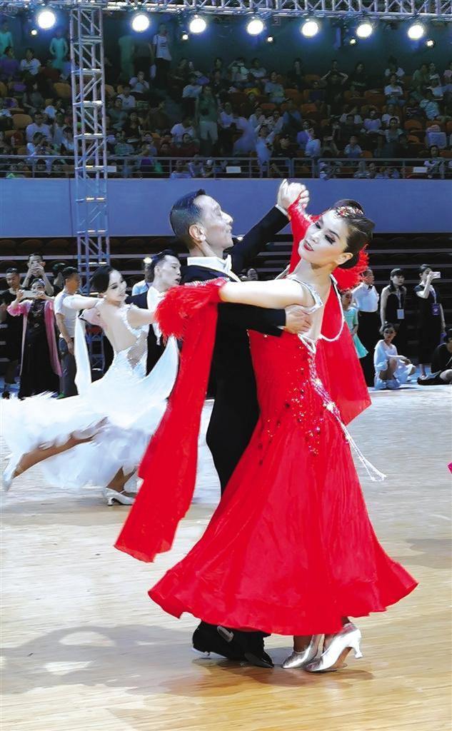 當(dāng)天的蘭州奧體中心綜合館內(nèi)燈光璀璨、激情四射。伴著或動(dòng)感或舒緩的音樂,優(yōu)雅浪漫的華爾茲、熱情奔放的探戈、性感狂野的倫巴……舞者們依次上場,將最優(yōu)美、最富激情、充滿藝術(shù)活力與創(chuàng)造力的高水平體育舞蹈展現(xiàn)在觀眾和裁判面前。